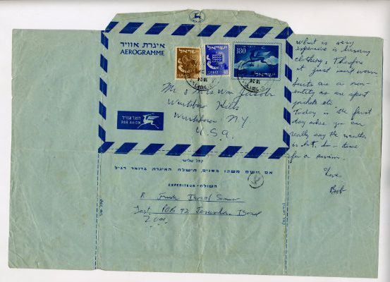 While in Haifa yesterday I met a boy who came over recently, is a member of the Z.O.A. & is staying until I am. That means I will have company here for my stay & also in Europe.
