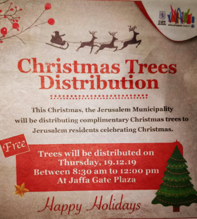 In December 2019 the City of Jerusalem was handing out free Christmas Trees at Jaffa Gate the entrance to Jerusalem. Many Jews were being stopped and preached about Christianity.
