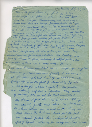 My dad wrote two letters on July 23rd. The first letter was at 2:00 pm, and the second letter was written late that night. He mentions that he woke up at 5:00 am to board the buses. In the second letter he mentions the buses returning back to Jerusalem at 2:00 AM.. That is a lot of touring – twenty-one hours of traveling in one day.