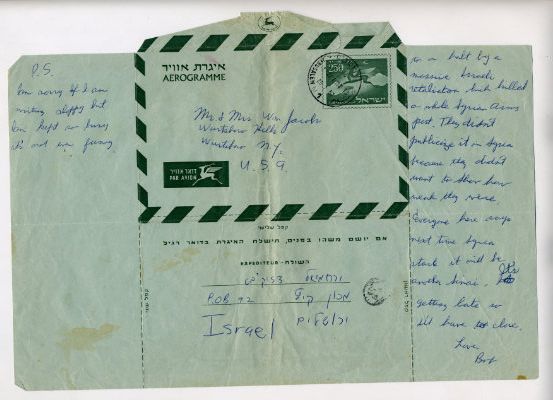 In the afternoon I went to the religious section of Jerusalem. Tank traps and barbed wire were seen all along the border. I found out that the fighting with Syria that we read about a few weeks ago had been brought to a halt by a massive Israeli retaliation which killed a whole Syrian Army post. They didn’t publicize it in Syria because they didn’t want to show how weak they were. Everyone here says next time Syria starts it will be another Sinai. It’s getting late so I’ll have to close.