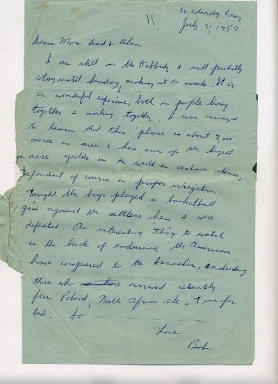 “I am still on the kibbutz tonight. The (American) boys played a basketball game against the Settlers (Kibbutzniks) and were defeated by the Settlers.”