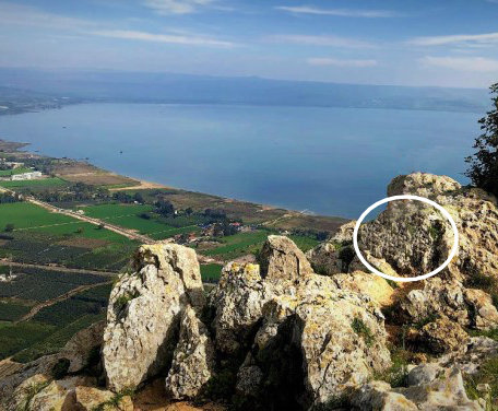 Har Arbel today. The white circle indicates the exact spot where Bob & Elaine sat in 1957